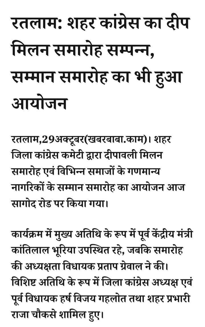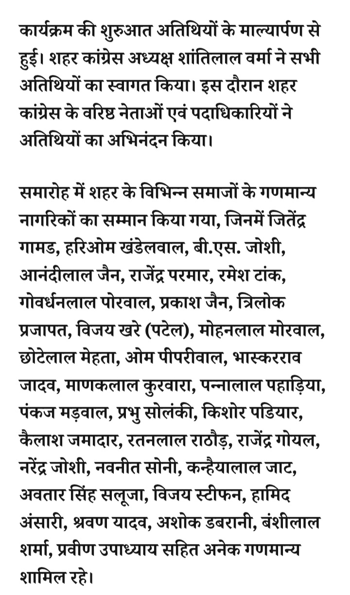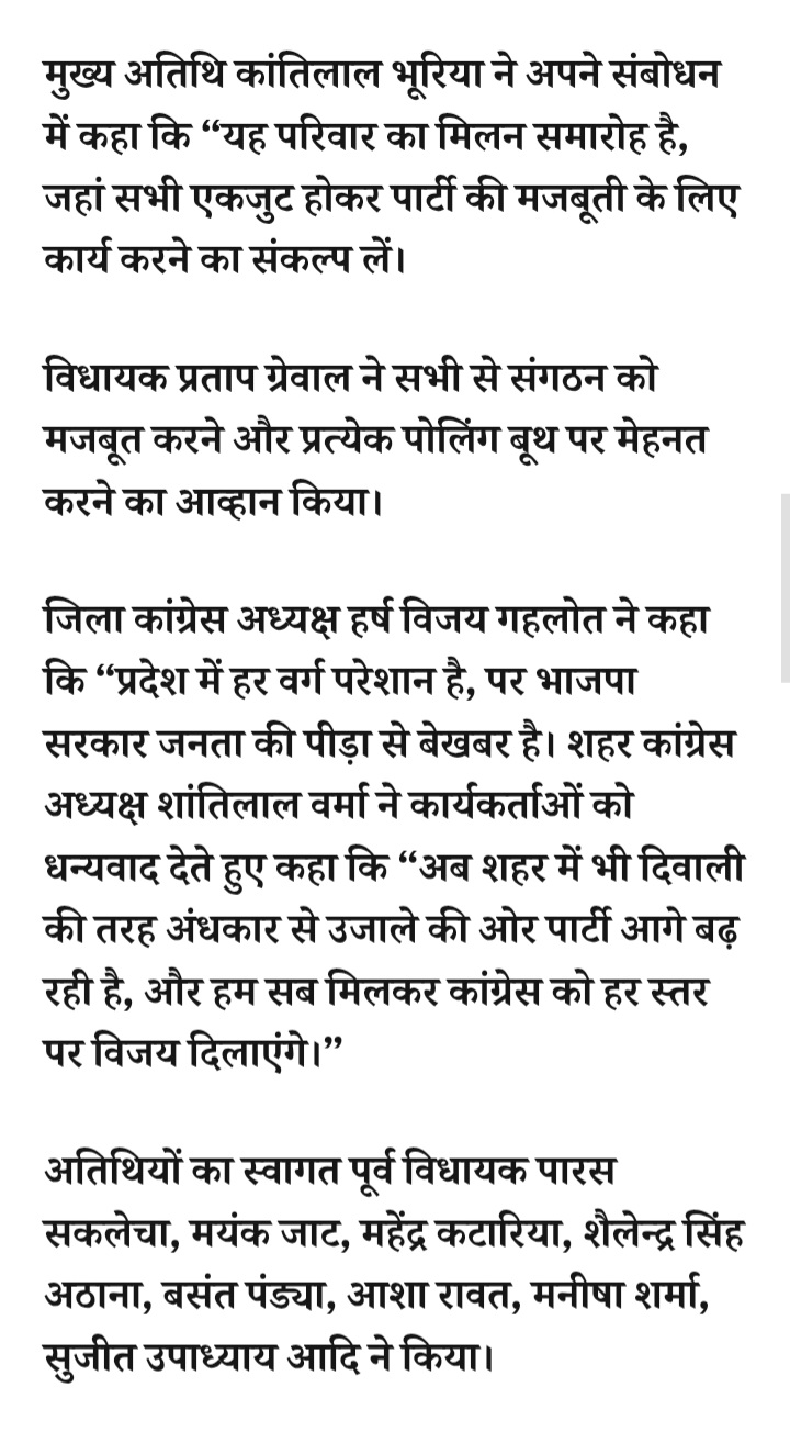 - रतलाम: शहर कांग्रेस का दीप मिलन समारोह सम्पन्न, सम्मान समारोह का भी हुआ आयोजन