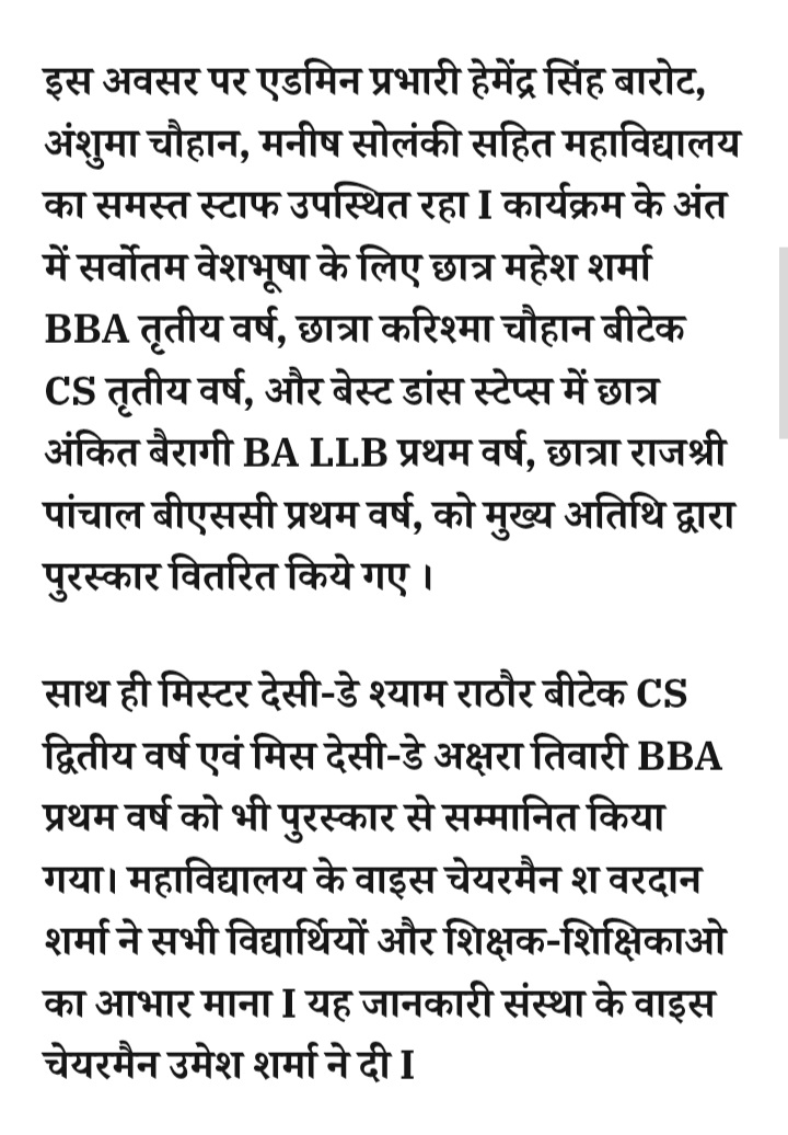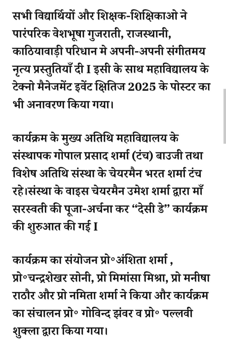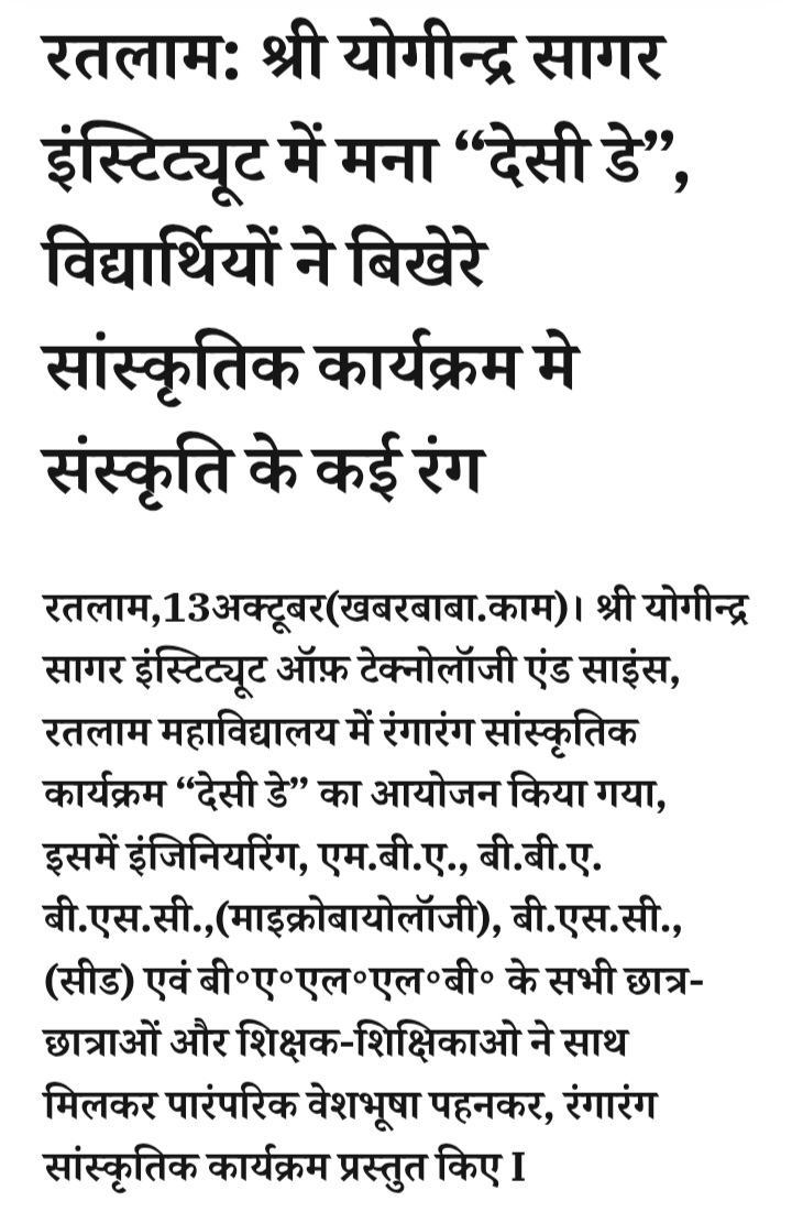 - रतलाम: श्री योगीन्द्र सागर इंस्टिट्यूट में मना “देसी डे”, विद्यार्थियों ने बिखेरे सांस्कृतिक कार्यक्रम मे संस्कृति के कई रंग