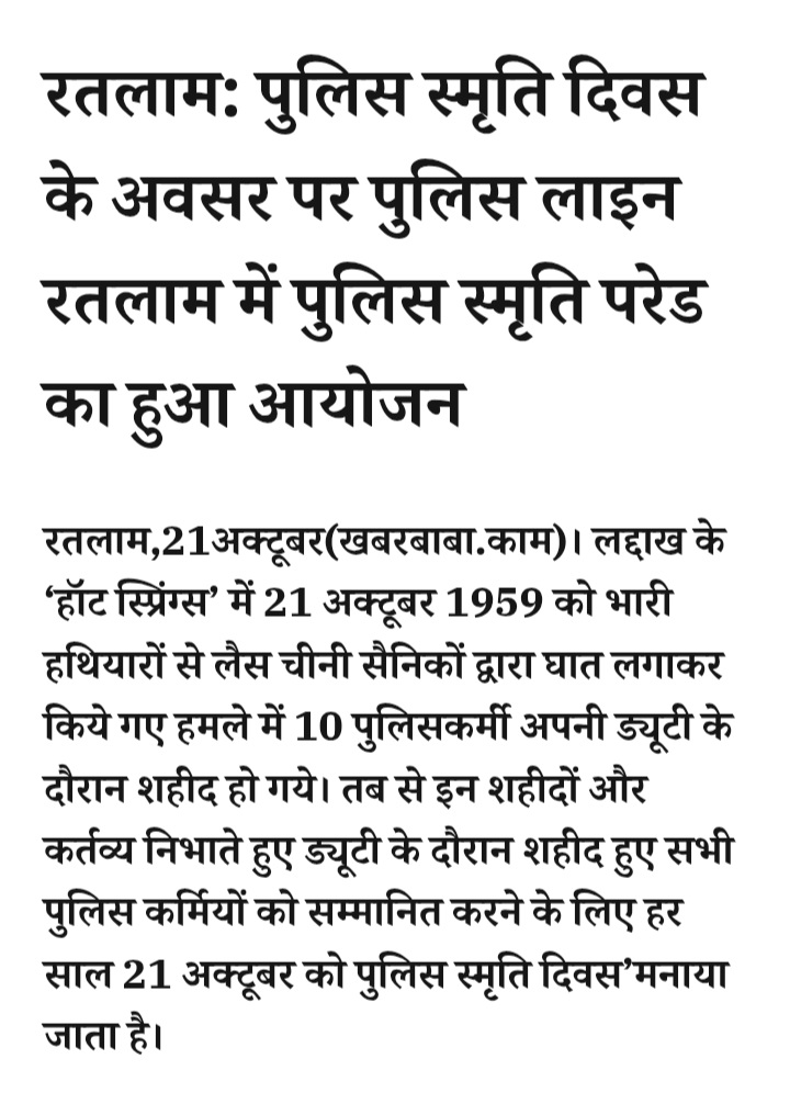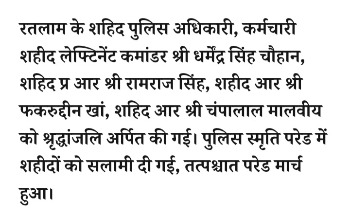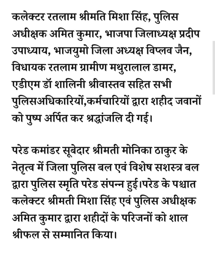 - रतलाम: पुलिस स्मृति दिवस के अवसर पर पुलिस लाइन रतलाम में पुलिस स्मृति परेड का हुआ आयोजन