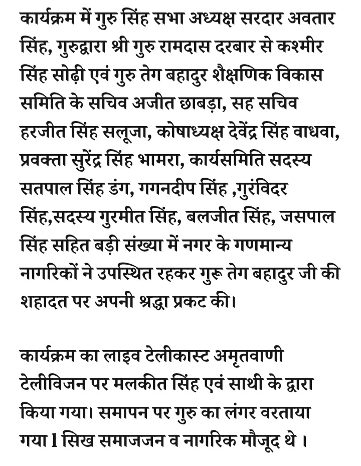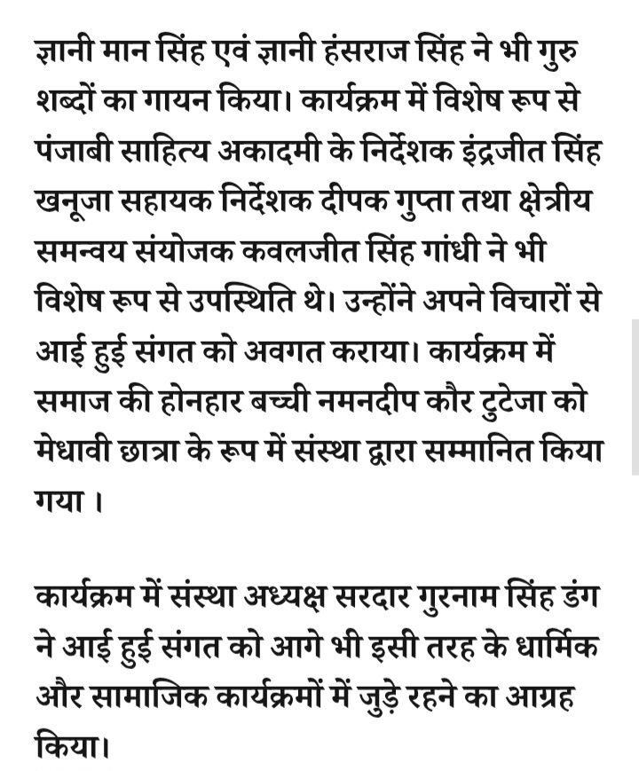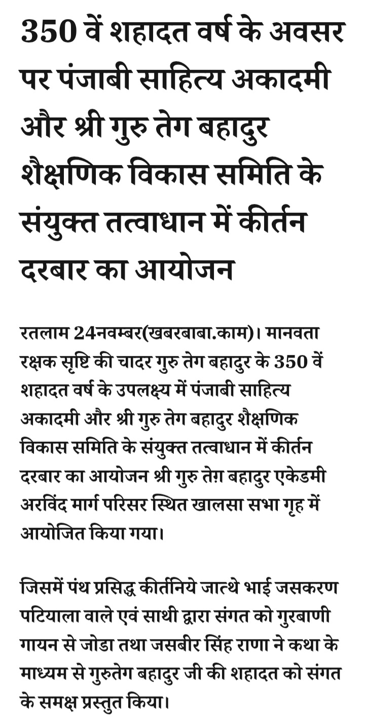 - 350 वें शहादत वर्ष के अवसर पर पंजाबी साहित्य अकादमी और श्री गुरु तेग बहादुर शैक्षणिक विकास समिति के संयुक्त तत्वाधान में कीर्तन दरबार का आयोजन