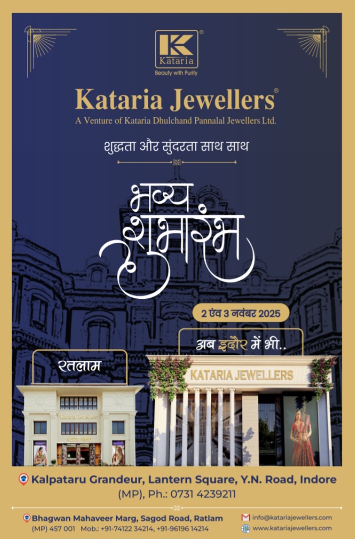 समृद्ध विरासत और ग्राहकों के अटूट विश्वास के साथ कटारिया ज्वैलर्स द्वारा इंदौर में अपने तीसरे भव्य शोरूम का शुभारंभ कलNovember 1, 2025