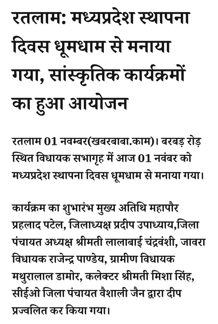 रतलाम: मध्यप्रदेश स्थापना दिवस धूमधाम से मनाया गया, सांस्कृतिक कार्यक्रमों का हुआ आयोजनNovember 1, 2025