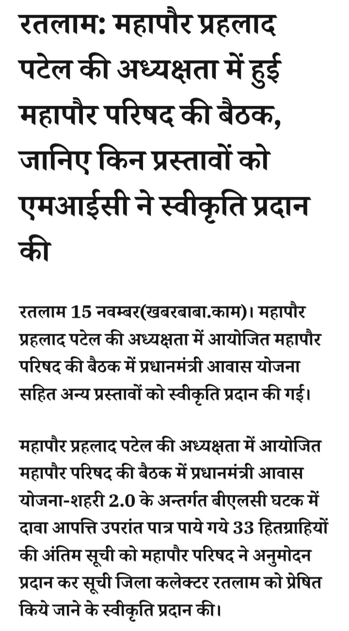- रतलाम: महापौर प्रहलाद पटेल की अध्यक्षता में हुई महापौर परिषद की बैठक, जानिए किन प्रस्तावों को एमआईसी ने स्वीकृति प्रदान की