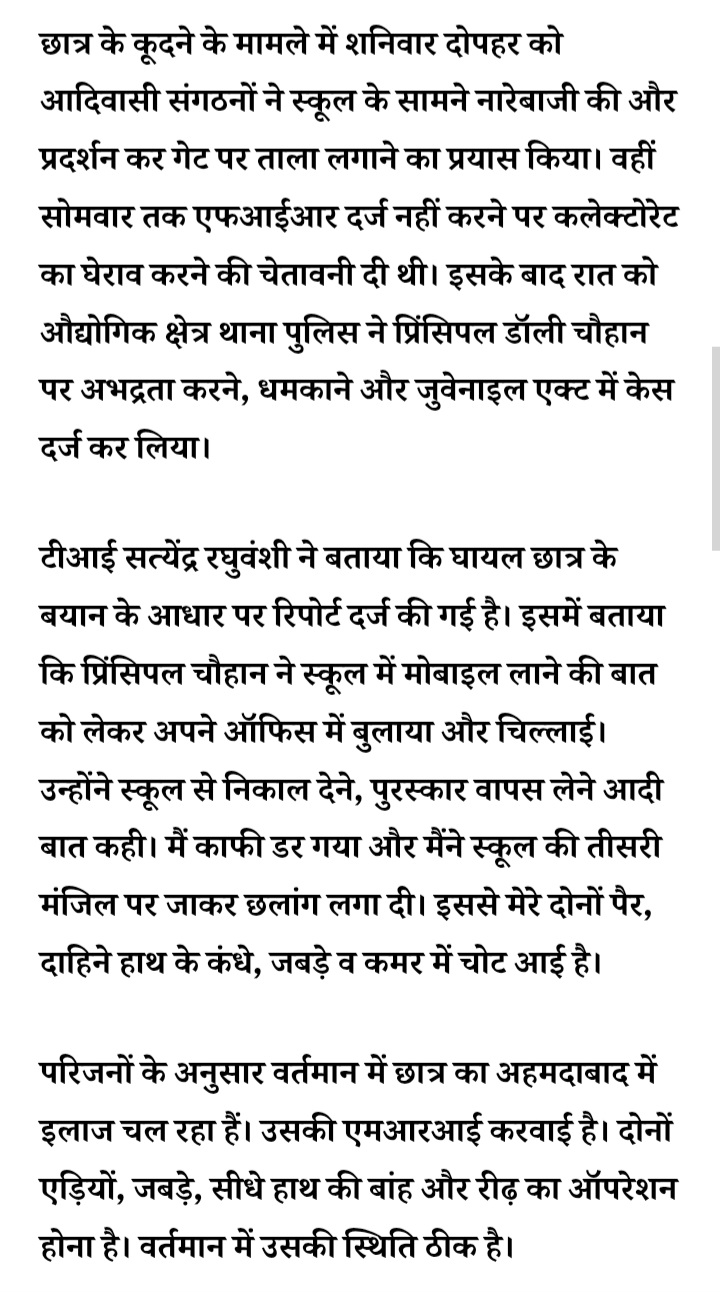 रतलाम: बोधी इंटरनेशनल स्कूल में कक्षा आठवीं के छात्र का तीसरी मंजिल से कूदने का मामला-औद्योगिक क्षेत्र थाने में स्कूल प्रिंसिपल के खिलाफ हुआ प्रकरण दर्जNovember 30, 2025
