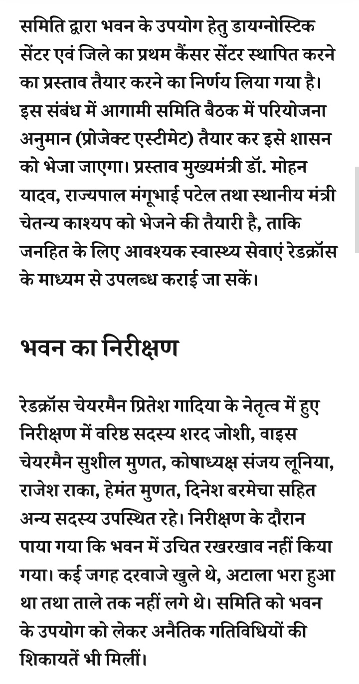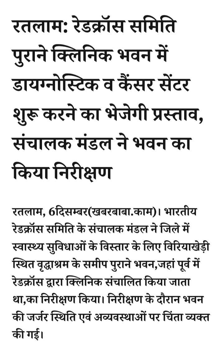 - रतलाम: रेडक्रॉस समिति पुराने क्लिनिक भवन में डायग्नोस्टिक व कैंसर सेंटर शुरू करने का भेजेगी प्रस्ताव, संचालक मंडल ने भवन का किया निरीक्षण