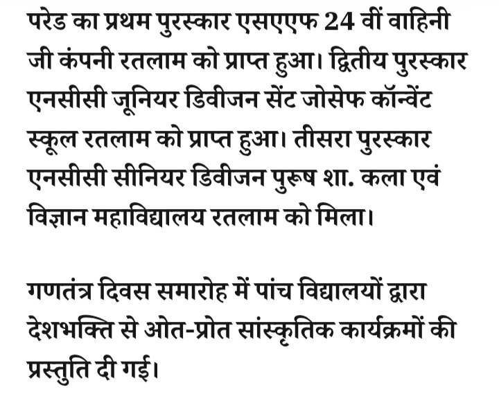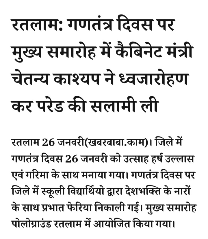 - रतलाम: गणतंत्र दिवस पर मुख्य समारोह में कैबिनेट मंत्री चेतन्य काश्यप ने ध्वजारोहण कर परेड की सलामी ली
