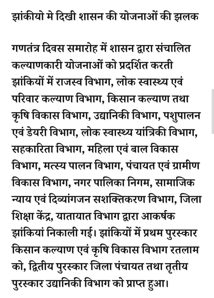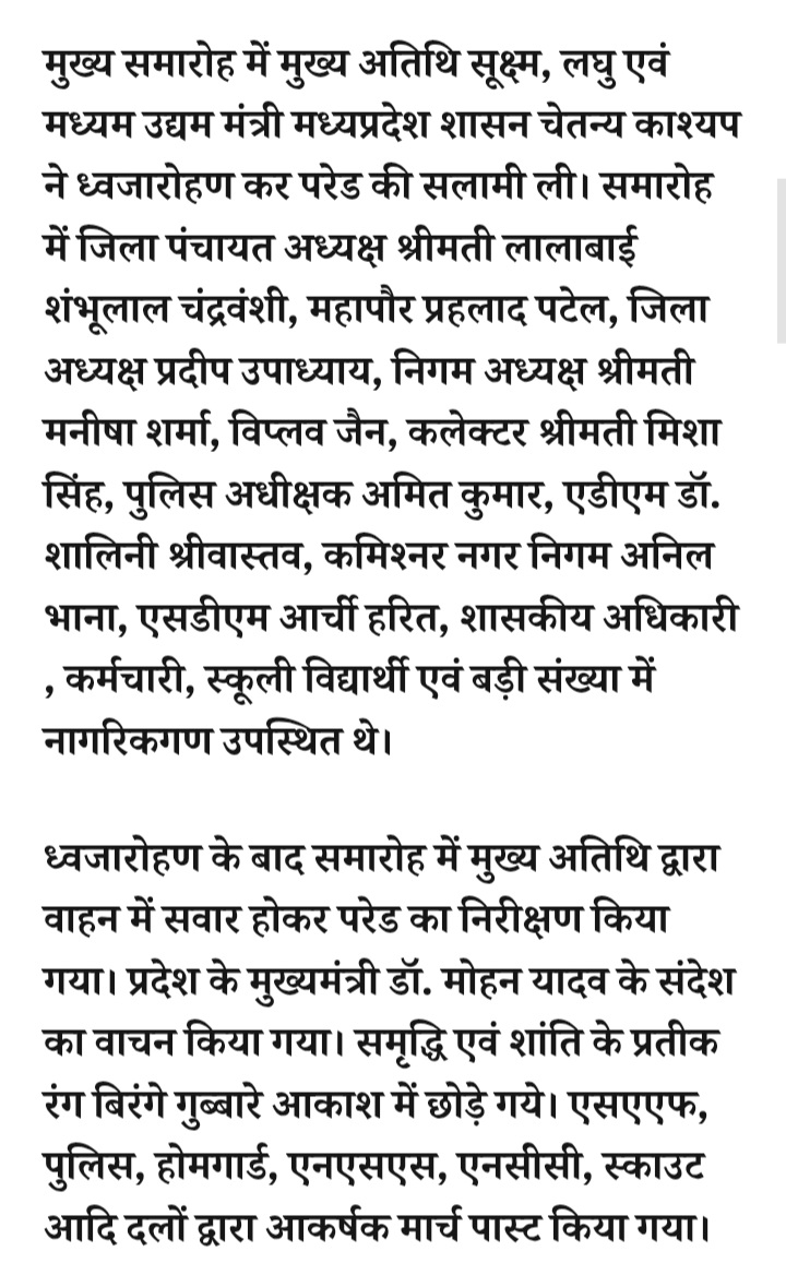 - रतलाम में गणतंत्र दिवस पर मुख्य समारोह पोलो ग्राउंड पर आयोजित होगा,कैबिनेट मंत्री चैतन्य काश्यप ध्वजारोहण कर परेड की सलामी लेंगे