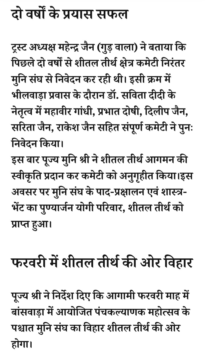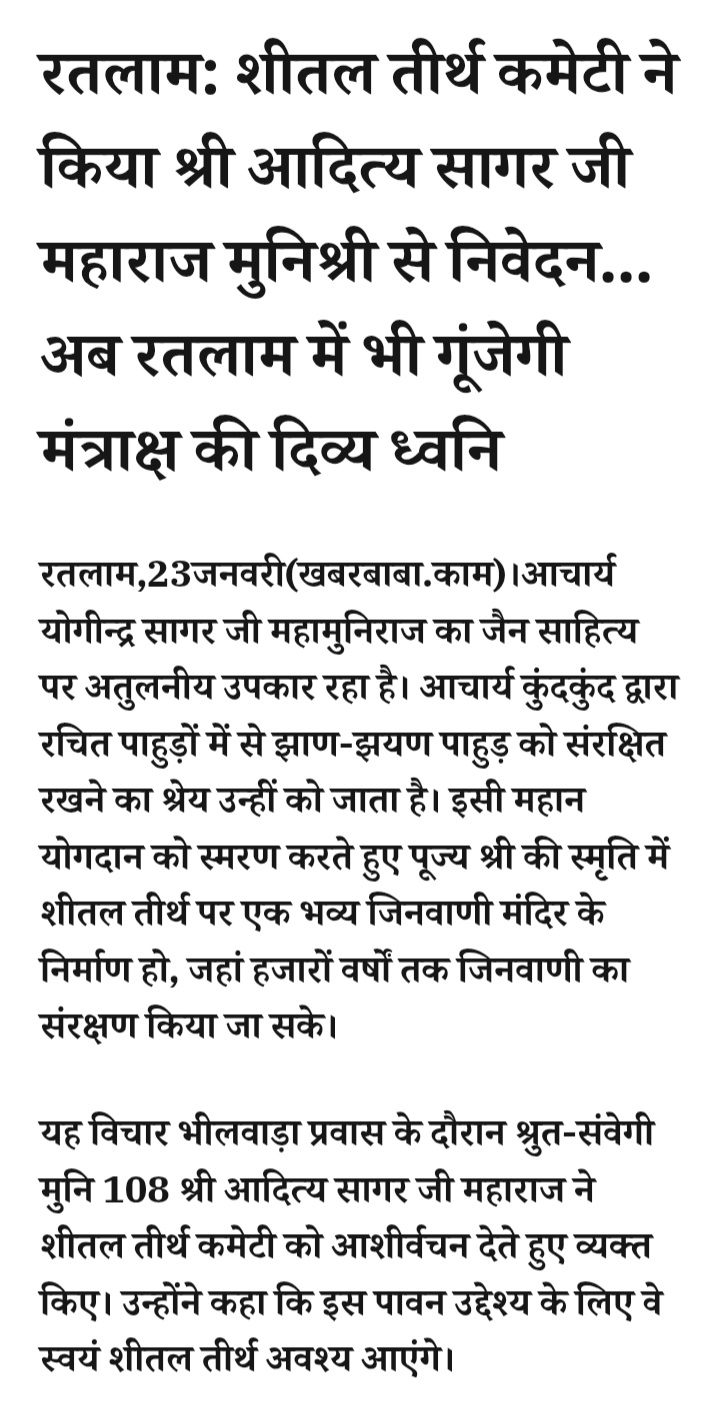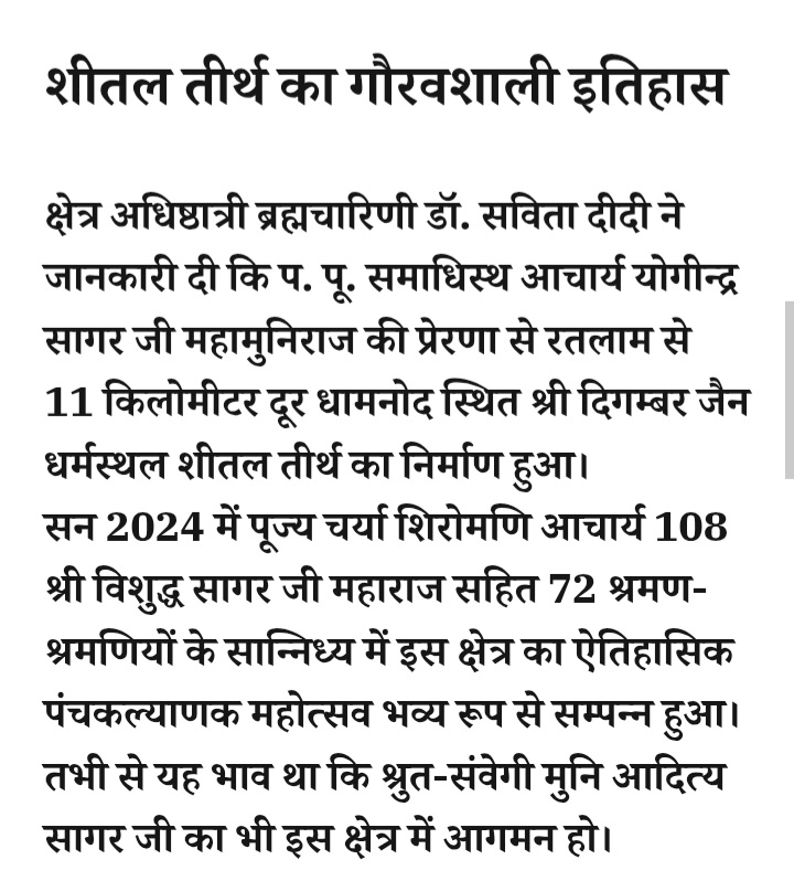 - रतलाम: शीतल तीर्थ कमेटी ने किया श्री आदित्य सागर जी महाराज मुनिश्री से निवेदन… अब रतलाम में भी गूंजेगी मंत्राक्ष की दिव्य ध्वनि