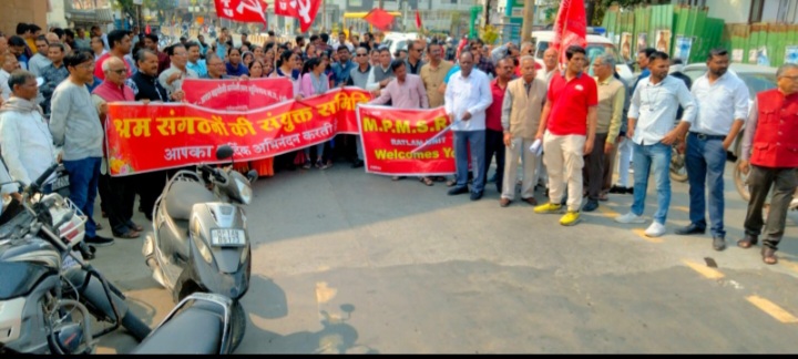 - श्रम संगठनों की संयुक्त समिति के तत्वाधान में राष्ट्रव्यापी हड़ताल,सभा हुई