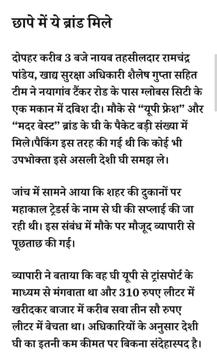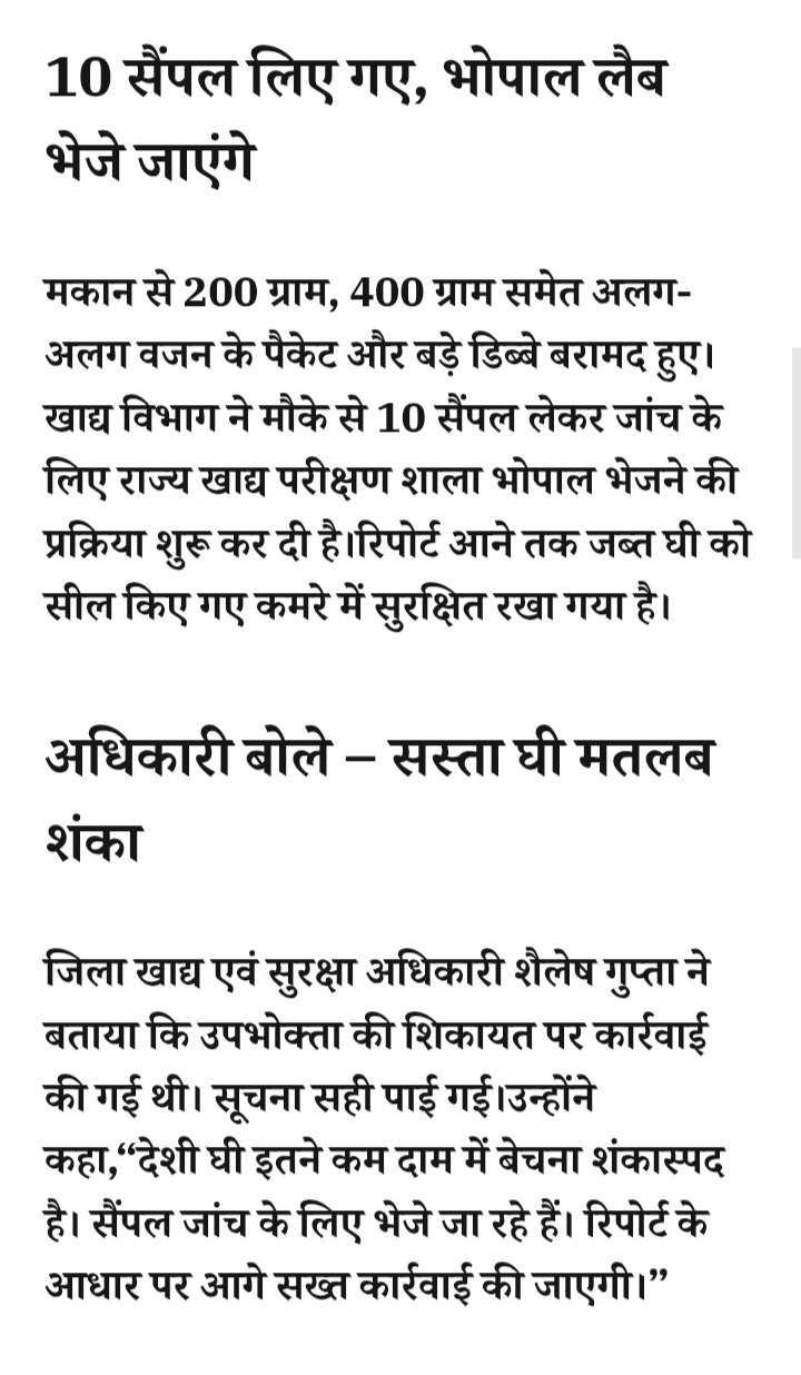 - रतलाम में नकली घी का बड़ा खुलासा, 1610 लीटर घी जब्त,यूपी की दो कंपनियों से मंगाकर देशी घी के नाम पर हो रही थी बिक्री