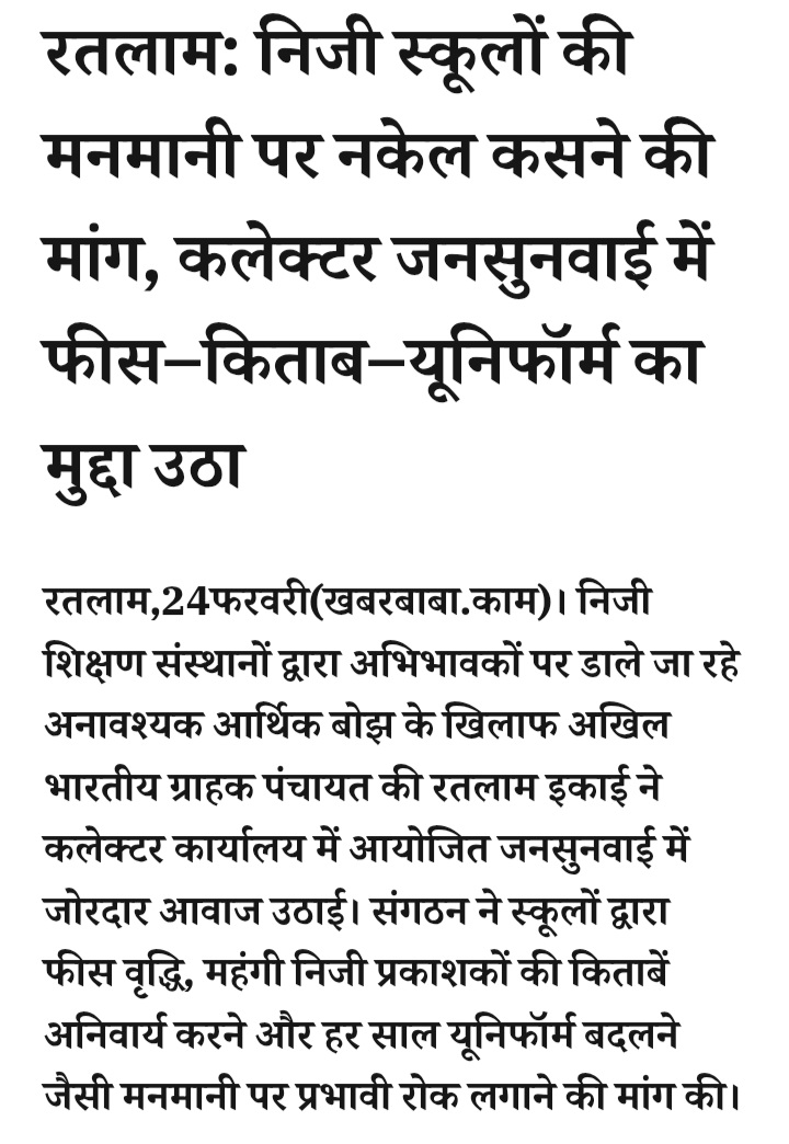 - रतलाम: निजी स्कूलों की मनमानी पर नकेल कसने की मांग, कलेक्टर जनसुनवाई में फीस–किताब–यूनिफॉर्म का मुद्दा उठा