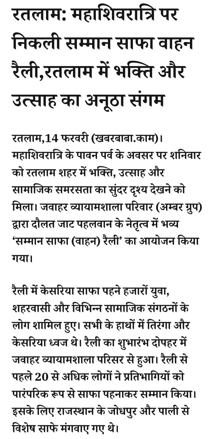 - रतलाम: महाशिवरात्रि पर निकली सम्मान साफा वाहन रैली,रतलाम में भक्ति और उत्साह का अनूठा संगम
