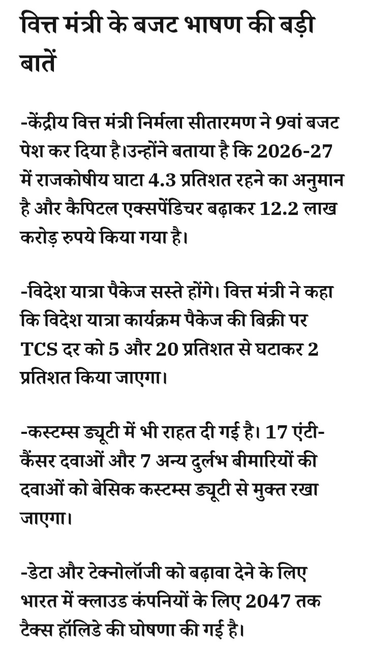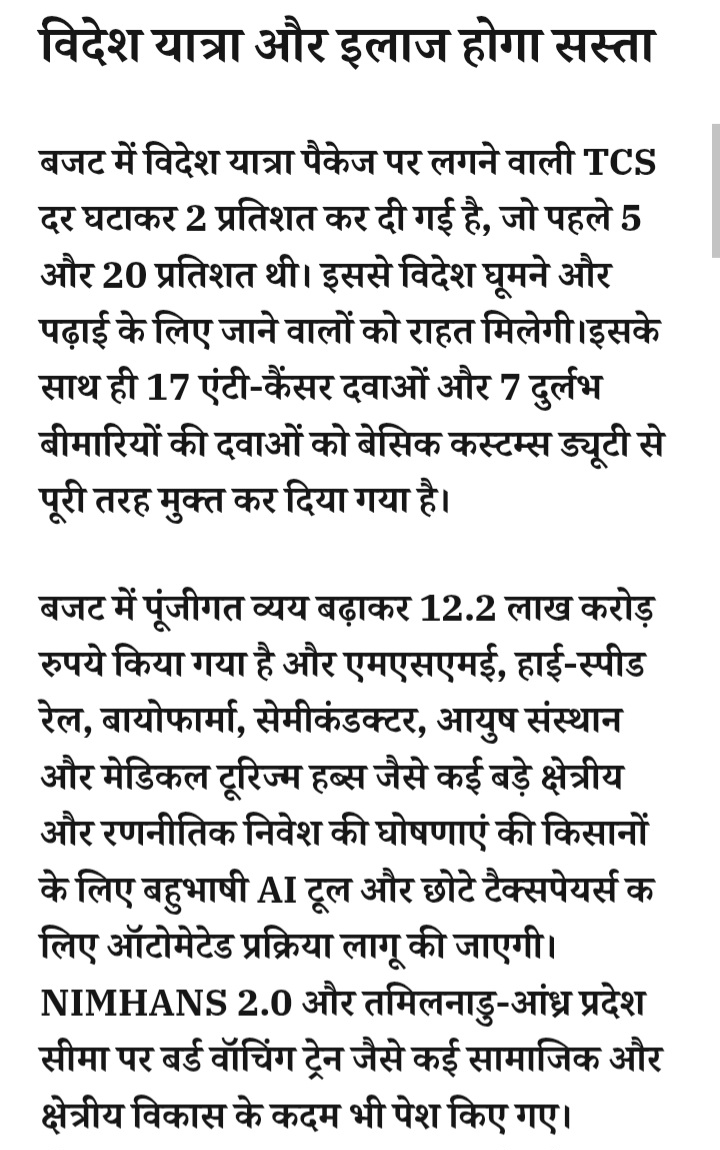 - केंद्रीय बजट 2026: विदेश यात्रा सस्ती, कैंसर की दवाओं पर राहत, लेकिन आयकर में कोई छूट नहीं… जानिए खास बातें