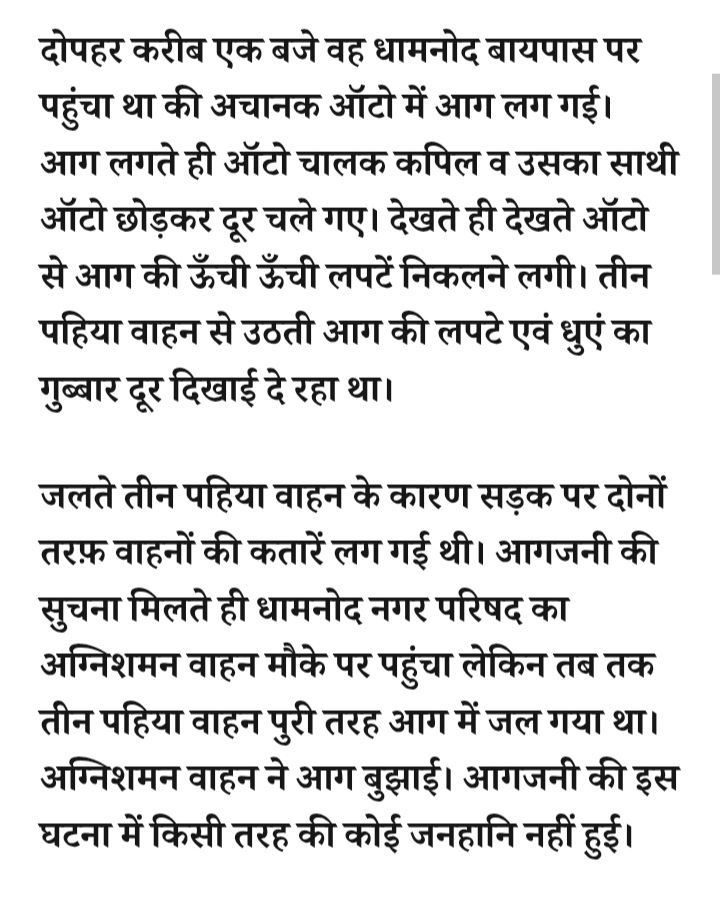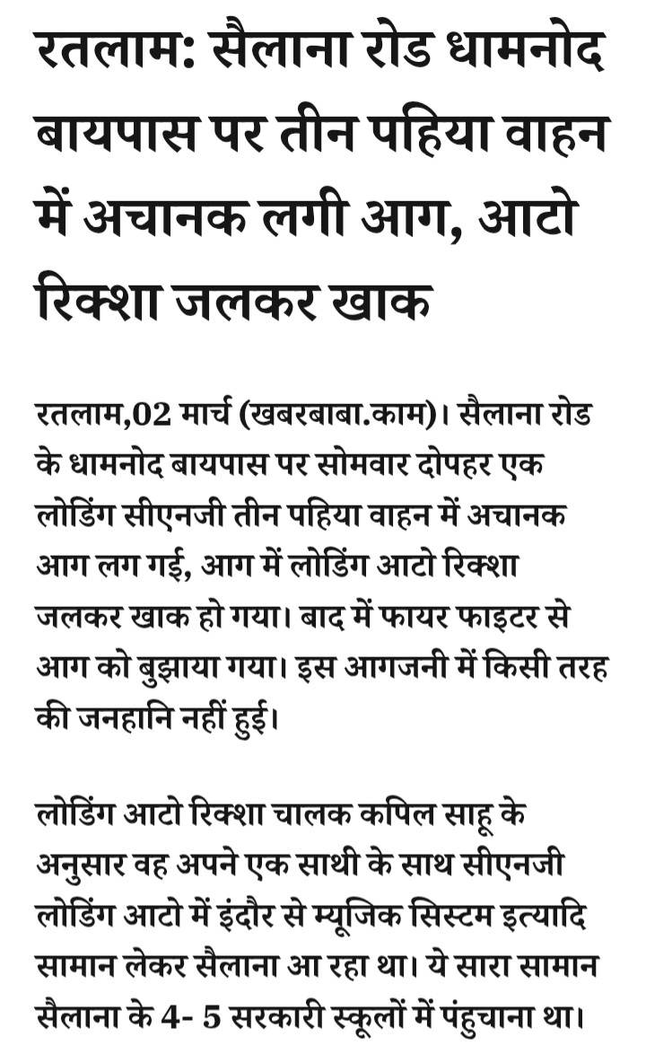 - रतलाम: सैलाना रोड धामनोद बायपास पर तीन पहिया वाहन में अचानक लगी आग, आटो रिक्शा जलकर खाक
