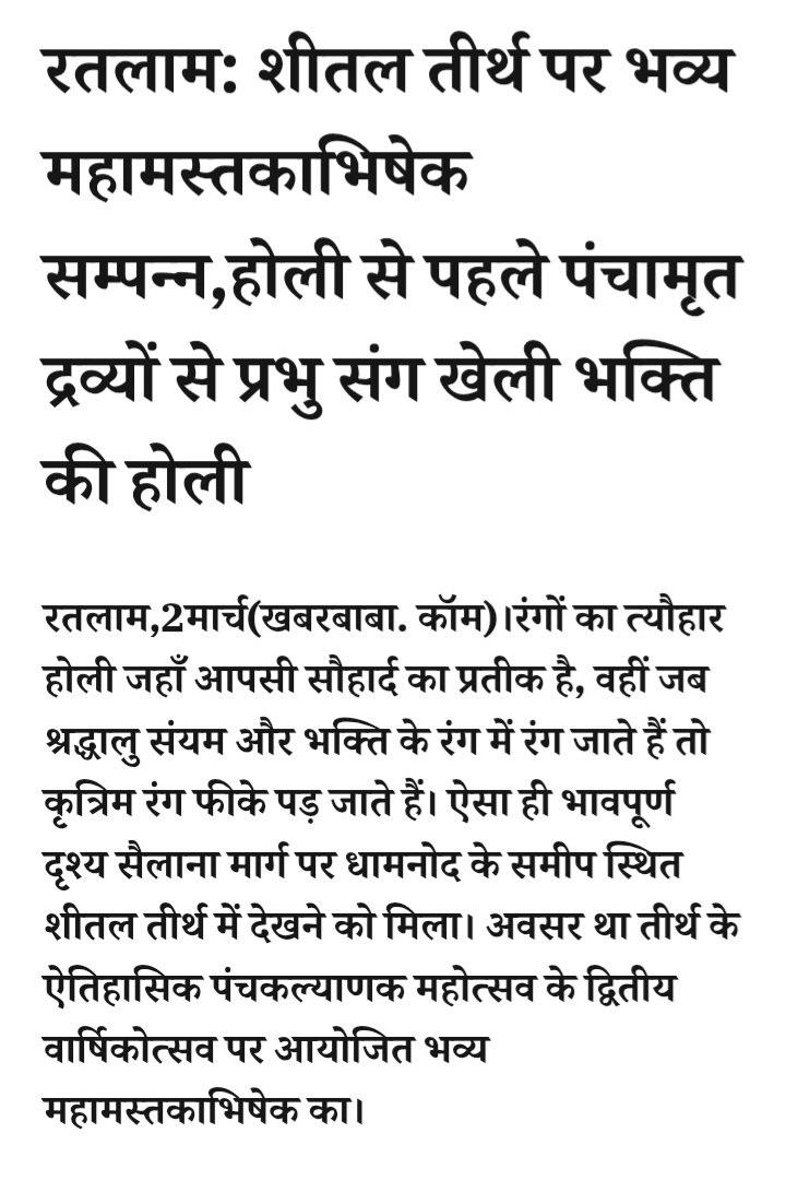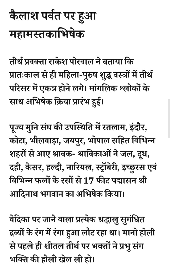 - रतलाम: शीतल तीर्थ पर भव्य महामस्तकाभिषेक सम्पन्न,होली से पहले पंचामृत द्रव्यों से प्रभु संग खेली भक्ति की होली