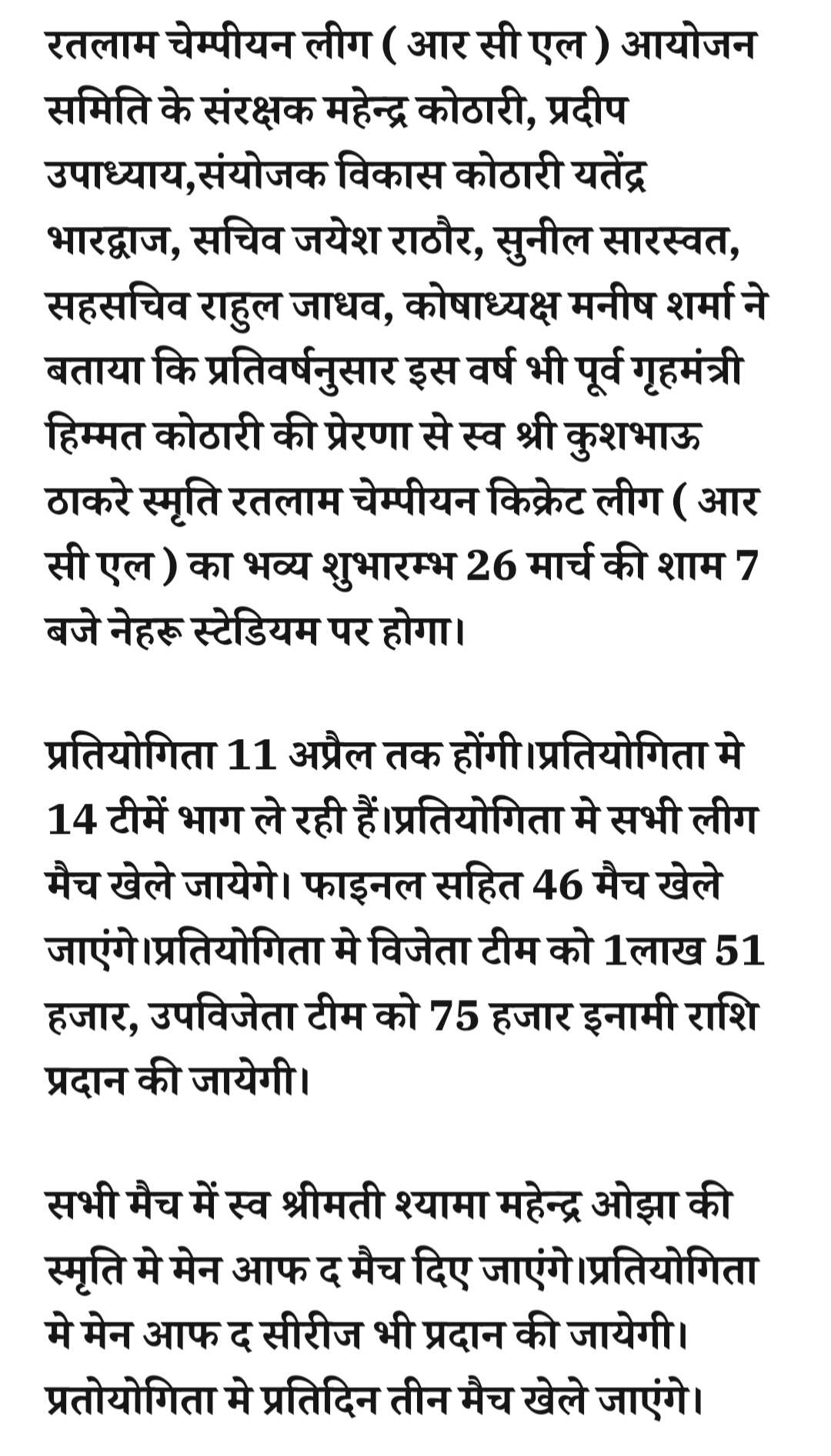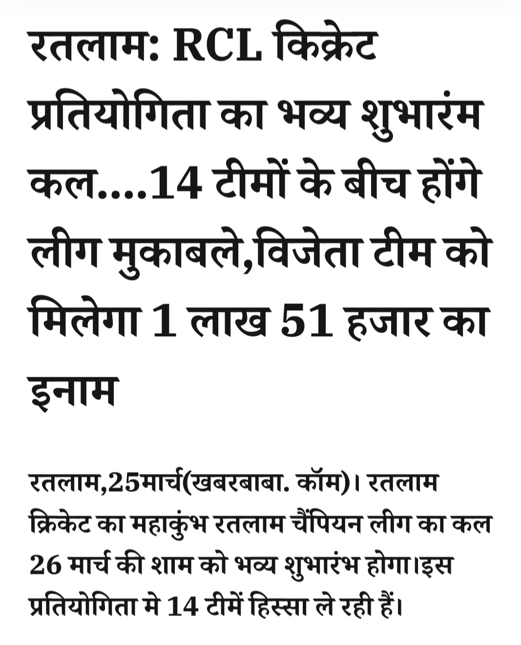 रतलाम: RCL किक्रेट प्रतियोगिता का भव्य शुभारंम कल….14 टीमों के बीच होंगे लीग मुकाबले,विजेता टीम को मिलेगा 1 लाख 51 हजार का इनामMarch 25, 2026