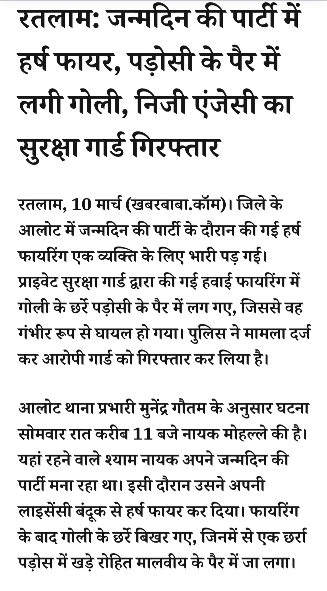 रतलाम: जन्मदिन की पार्टी में हर्ष फायर, पड़ोसी के पैर में लगी गोली, निजी एंजेसी का सुरक्षा गार्ड गिरफ्तारMarch 10, 2026