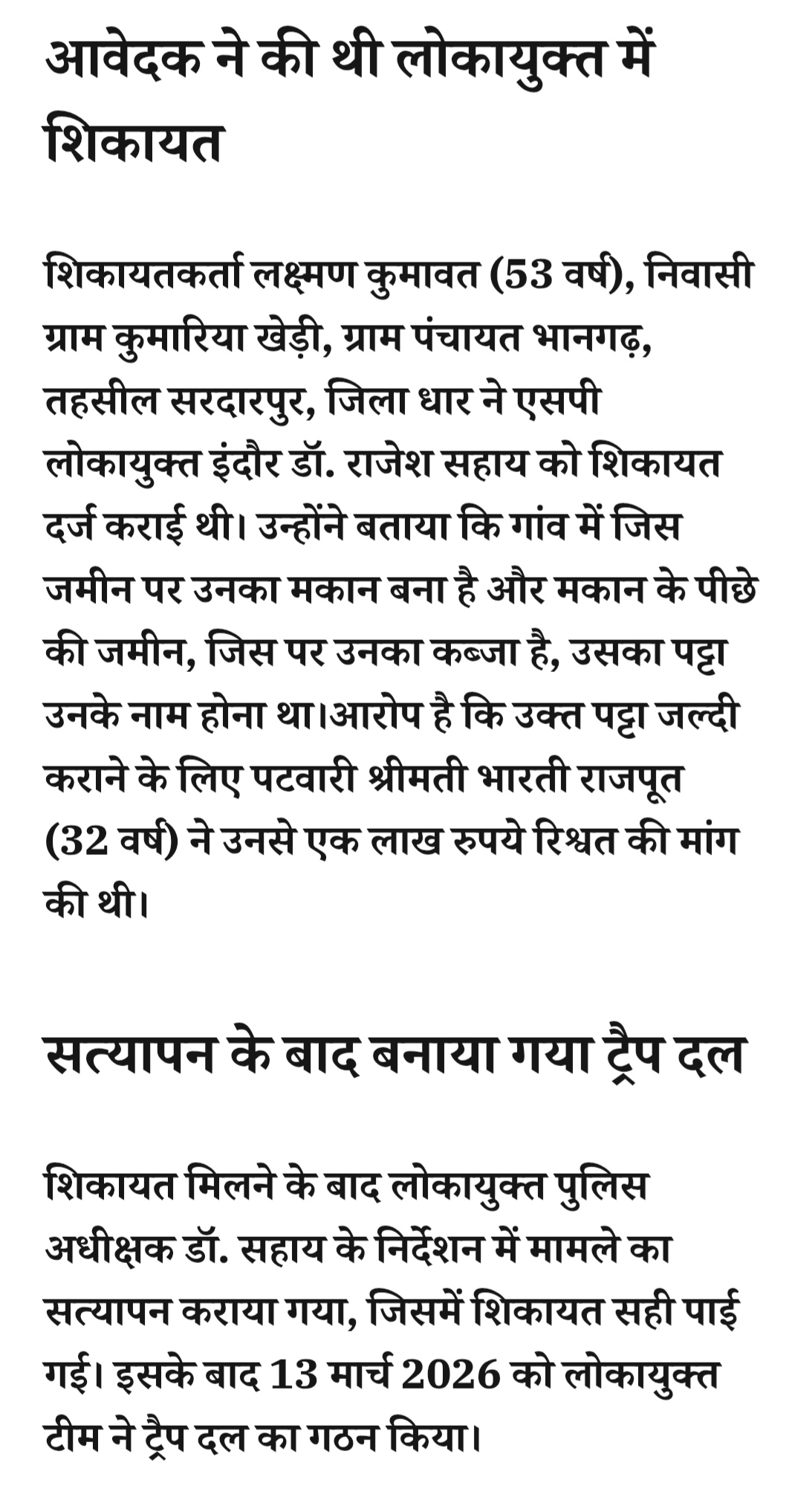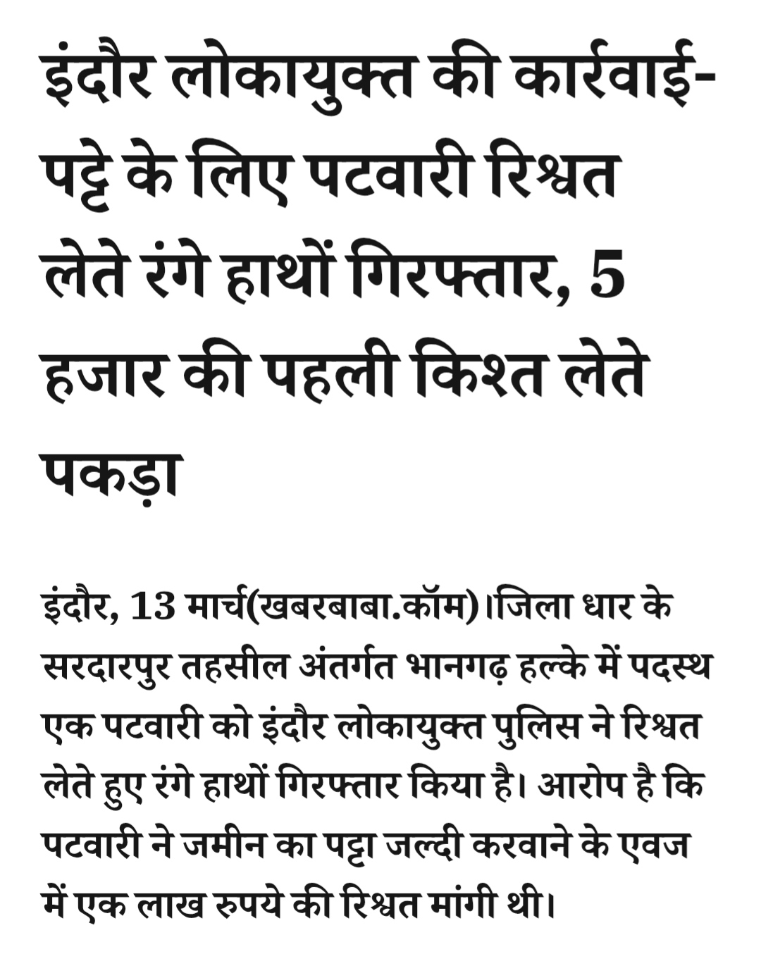 इंदौर लोकायुक्त की कार्रवाई- पट्टे के लिए पटवारी रिश्वत लेते रंगे हाथों गिरफ्तार, 5 हजार की पहली किश्त लेते पकड़ाMarch 13, 2026