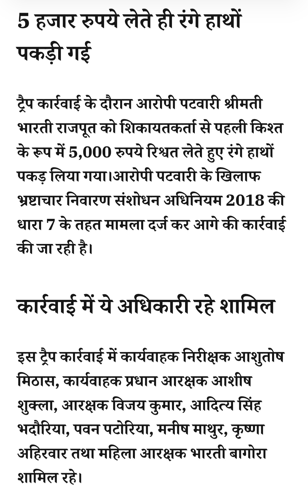 एसपी डॉ. राजेश सहाय के निर्देशन में लोकायुक्त इंदौर की बड़ी कार्रवाई-आंगनवाड़ी सहायिका से 5 हजार की रिश्वत लेते महिला पर्यवेक्षक रंगे हाथ गिरफ्तार… लाखों की रिश्वत मांगने का आरोप
