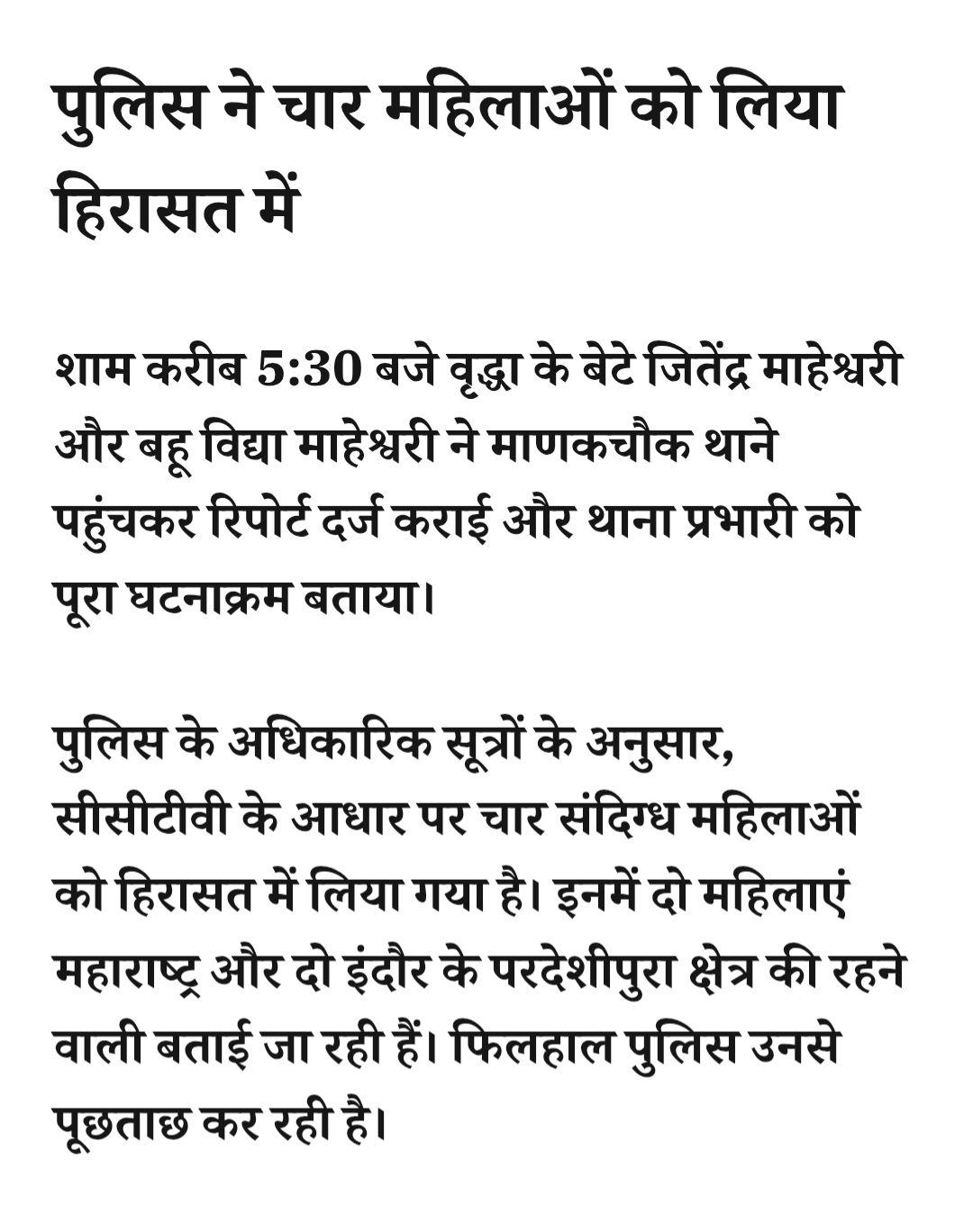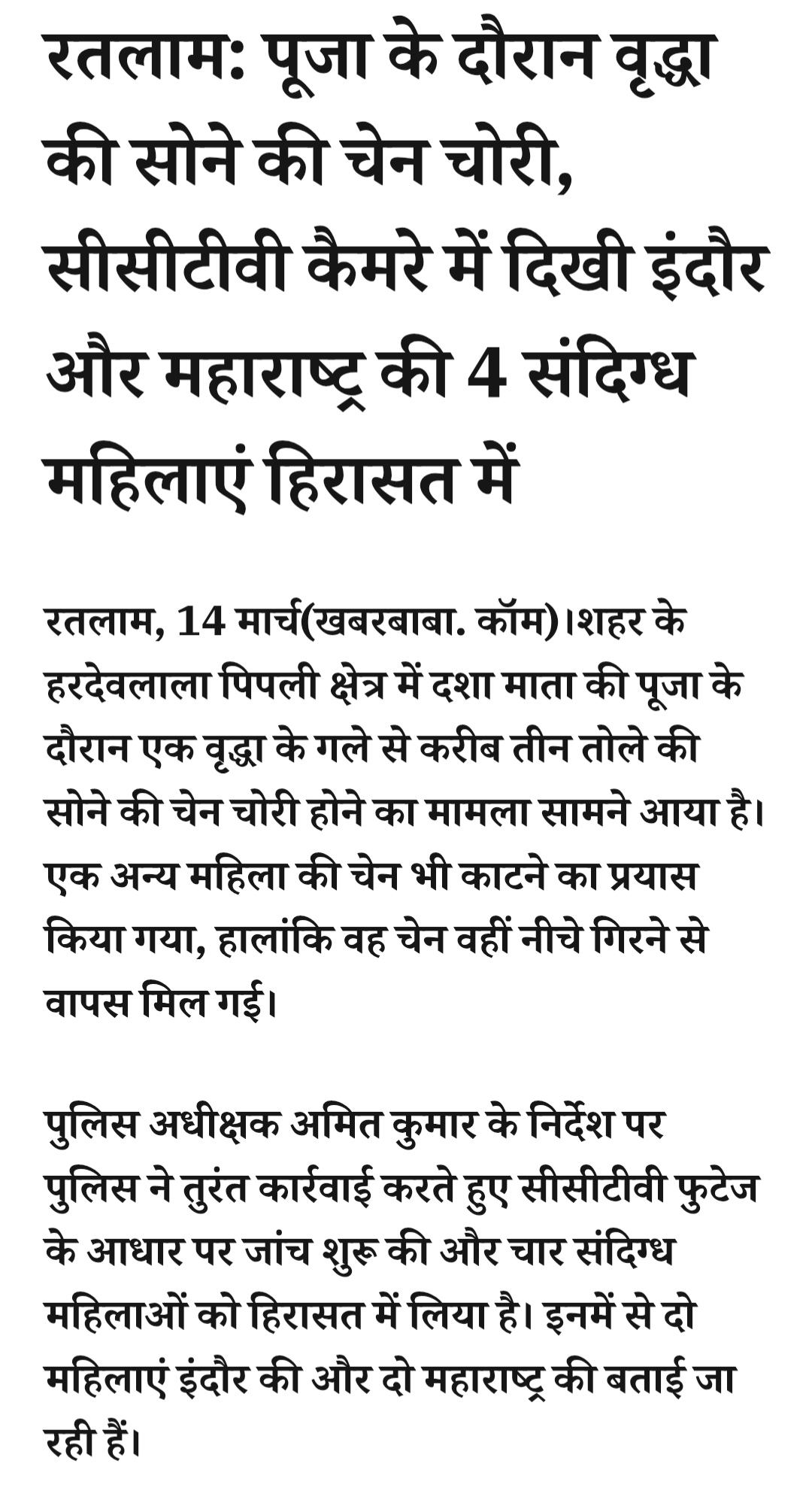 रतलाम: पूजा के दौरान वृद्धा की सोने की चेन चोरी, सीसीटीवी कैमरे में दिखी इंदौर और महाराष्ट्र की 4 संदिग्ध महिलाएं हिरासत मेंMarch 14, 2026