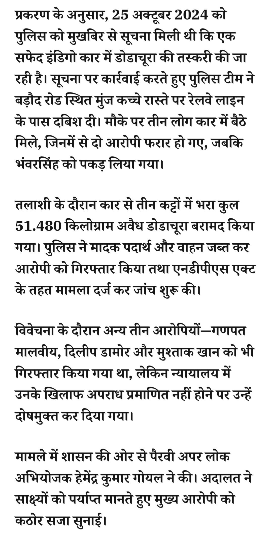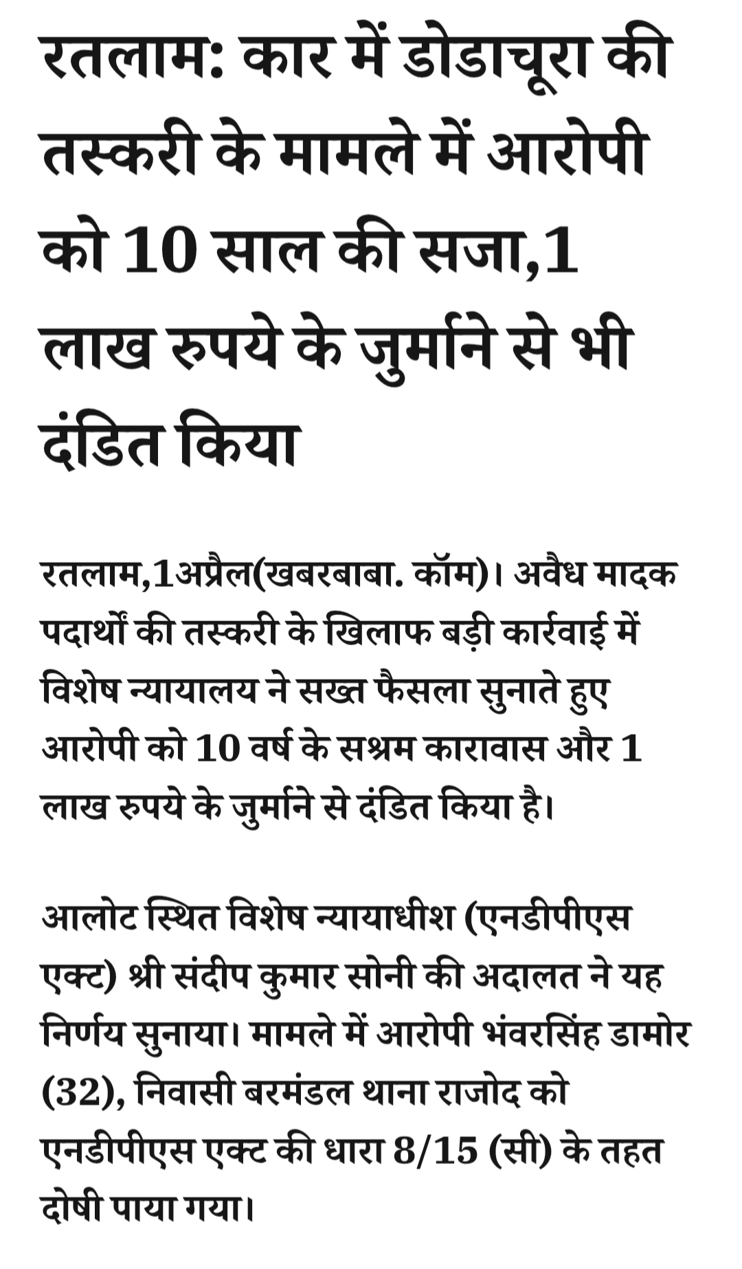 रतलाम: कार में डोडाचूरा की तस्करी के मामले में आरोपी को 10 साल की सजा,1 लाख रुपये के जुर्माने से भी दंडित कियाApril 1, 2026